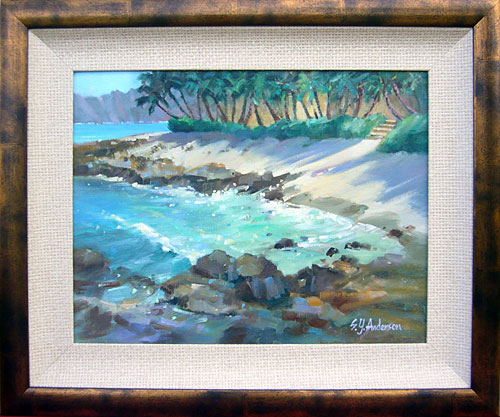 Original oil painting of a cove on the north shore of Oahu, by Susie Y. Anderson.