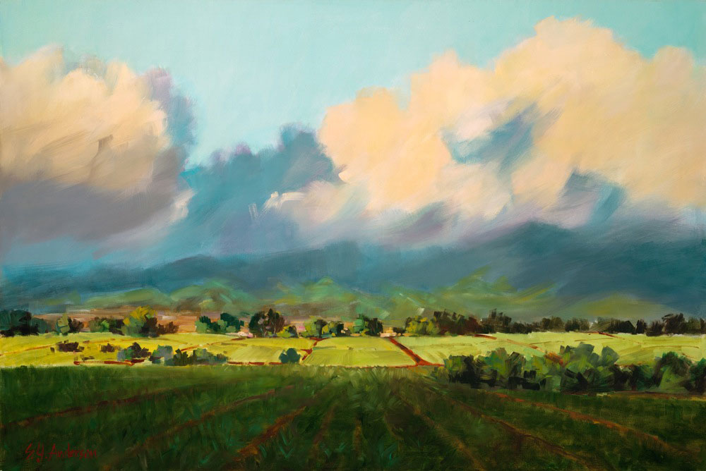 Giclee reproduction on canvas from an original oil painting of a beautiful field on the island of Oahu by artist Susie Y. Anderson.