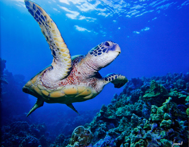 Flying Honu is a double-matted photograph by artists Michael and Monica Sweet.