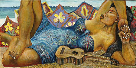 Giclee of painting of woman with ukulele by artist Avi Kiriaty