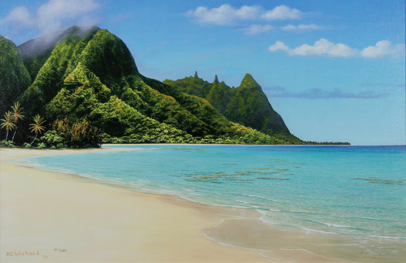 Giclee of painting of island landscape by artist Harry Wishard.