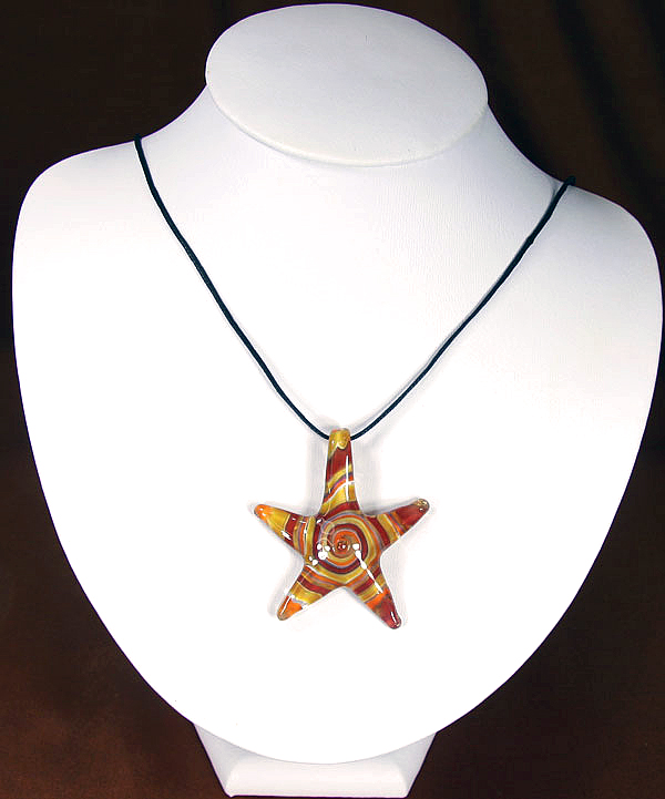 Orange, Yellow, and Red Glass Starfish Necklace by Artist Rosemary Pierro