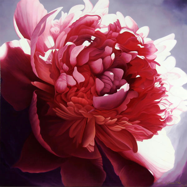Giclee on canvas from an original painting of a peony flower by artist Ginette Pitre.