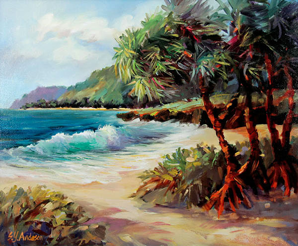 Giclee reproduction on canvas of Pounders Beach from an original oil painting by Susie Anderson.