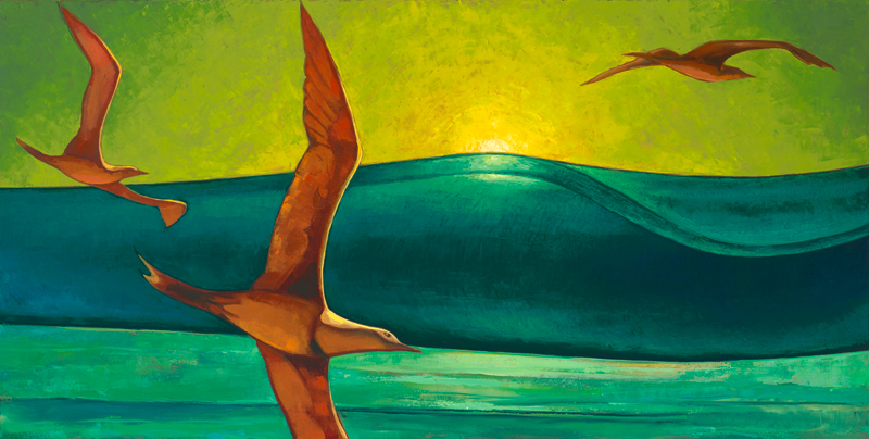 Giclee on canvas of an original oil painting of Shear Water sea birds at sunrise by artist Colin Redican.