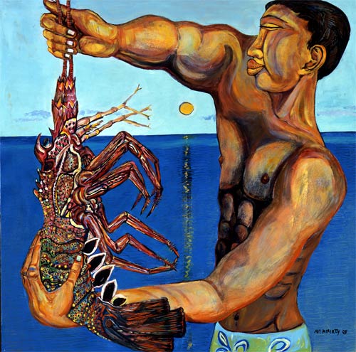 Giclee of painting of man and lobster by artist Avi Kiriaty
