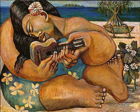 Giclee of painting of woman playing ukulele by artist Avi Kiriaty