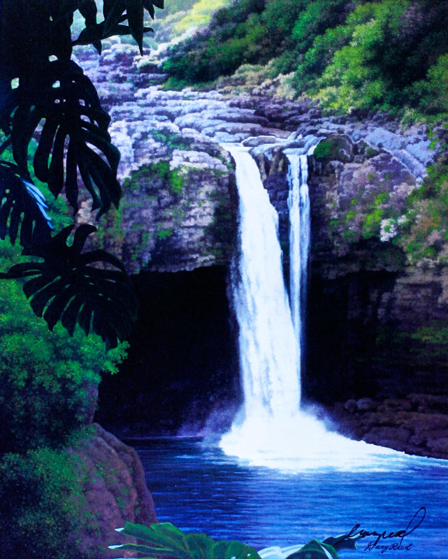 Matted 11″ x 14″ print of painting of waterfall by artist Gary Reed. Mat color is white. Size includes mat. Artwork ships packaged and insured. Please call the gallery for availability.